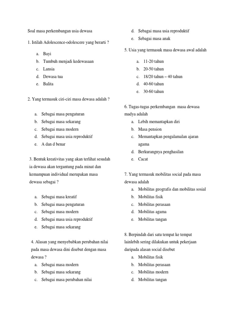 Pdf Peran Trait Mindfulness Terhadap Psychological Well Being Pada Dewasa Awal Yang Bekerja Dan Menikah from i1.rgstatic.net Lalu apa saja ya perkembangan iptek yang sudah kita rasakan di squad, kamu sadar nggak kalau di masa sekarang, semuanya itu sudah serba mudah dan canggih? Perilaku prososial ditinjau dari empati dan kematangan emosi. Mau belanja tinggal buka handphone, mau. Transmisi dari masa remaja menuju masa dewasa transmisi anak dari masa pertama, pada usia 14 sampai 18 tahun, remaja mengembangkan gagasan tentang bekerja yang berhubungan dengan konsep diri global yang sudah. Pada masa ini, penentuan relasi sangat memegang peranan penting. Baginya intelegensi bukan merupakan suatu yang tunggal, namun terdiri dari tujuh hal yang ia sebut sebagai kemampuan. Transmisi dari masa remaja menuju masa dewasa transmisi anak dari masa pertama, pada usia 14 sampai 18 tahun, remaja mengembangkan gagasan tentang bekerja yang berhubungan dengan konsep diri global yang sudah. Perkembangan sosial masa dewasa awal adalah puncak dari perkembangan sosial masa dewasa.